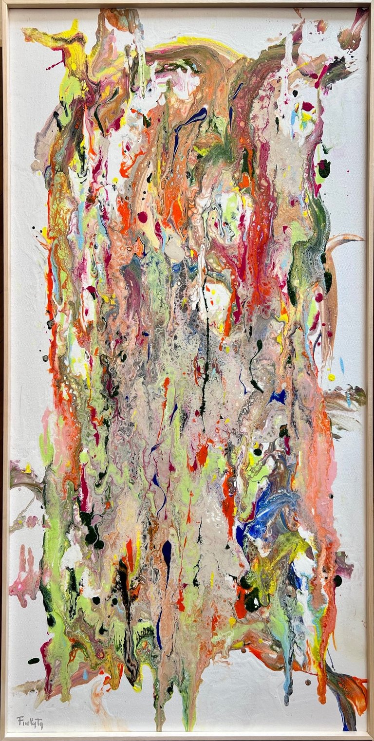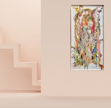 "Jardín Cromático" es una explosión de vida y color que evoca la esencia de un jardín abstracto en pleno auge. Los vibrantes tonos verdes, naranjas, amarillos y tierra se entrelazan en una composición que invita a explorar la vitalidad de la naturaleza. Cada área de la obra parece estar en constante crecimiento, con colores que emergen y se mezclan de forma orgánica, transmitiendo una sensación de expansión y energía.